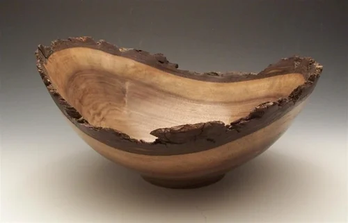 15h x 8w - Natural edge bur oak bowl with acorns.