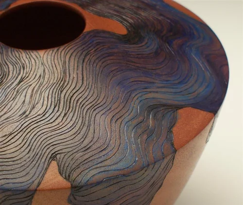 6.0h x 11.5w - Carved and textured walnut vessel.